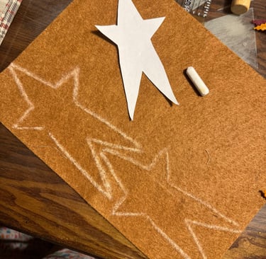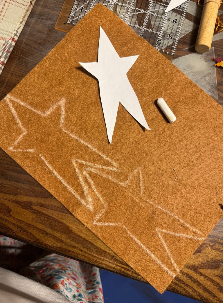 Now it's time to work with the stars. You will use your chalk to outline the stars on your felt. I prefer using chalk because it's quite forgiving.