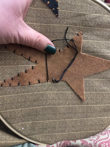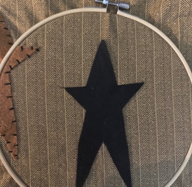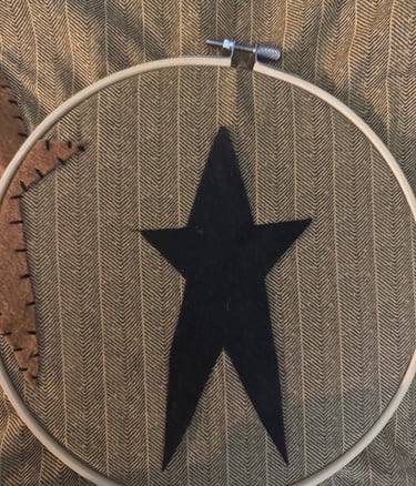 I'm utilizing an embroidery hoop to sew my stars, which keeps the fabric tight.