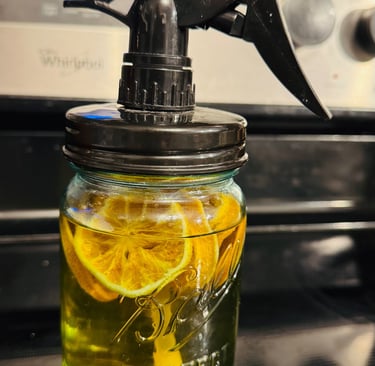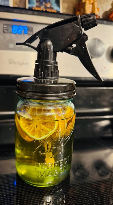 Combine one cup of water with one cup of white vinegar in a 16oz spray bottle.