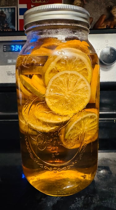 You can add dried lemon or oranges to your bottle to help reduce the vinegar odor.